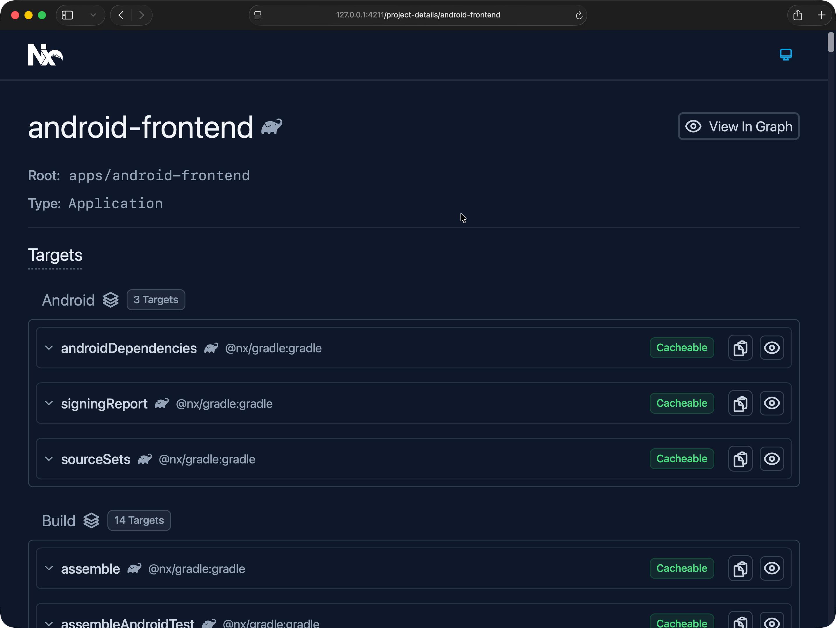 1plugins { 2+ id("dev.nx.gradle.project-graph") version "0.1.0" 3 alias(libs.plugins.android.application) 4 alias(libs.plugins.kotlin.android) 5 alias(libs.plugins.kotlin.compose) 6} 7 8android {...} 9dependencies {...} 10 11+ allprojects { 12+ apply { 13+ plugin("dev.nx.gradle.project-graph") 14+ } 15+ } 16